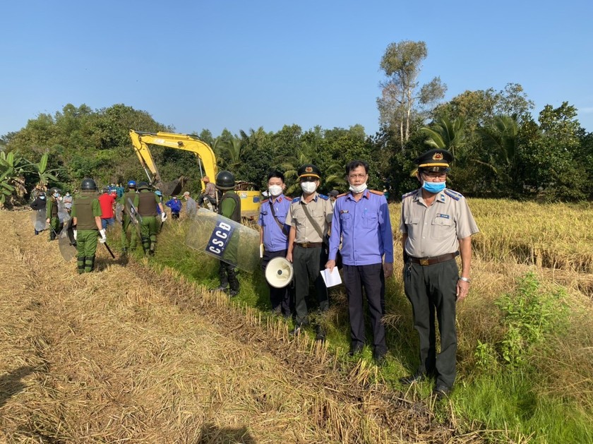 Chấp hành viên đang thực hiện công tác cưỡng chế
