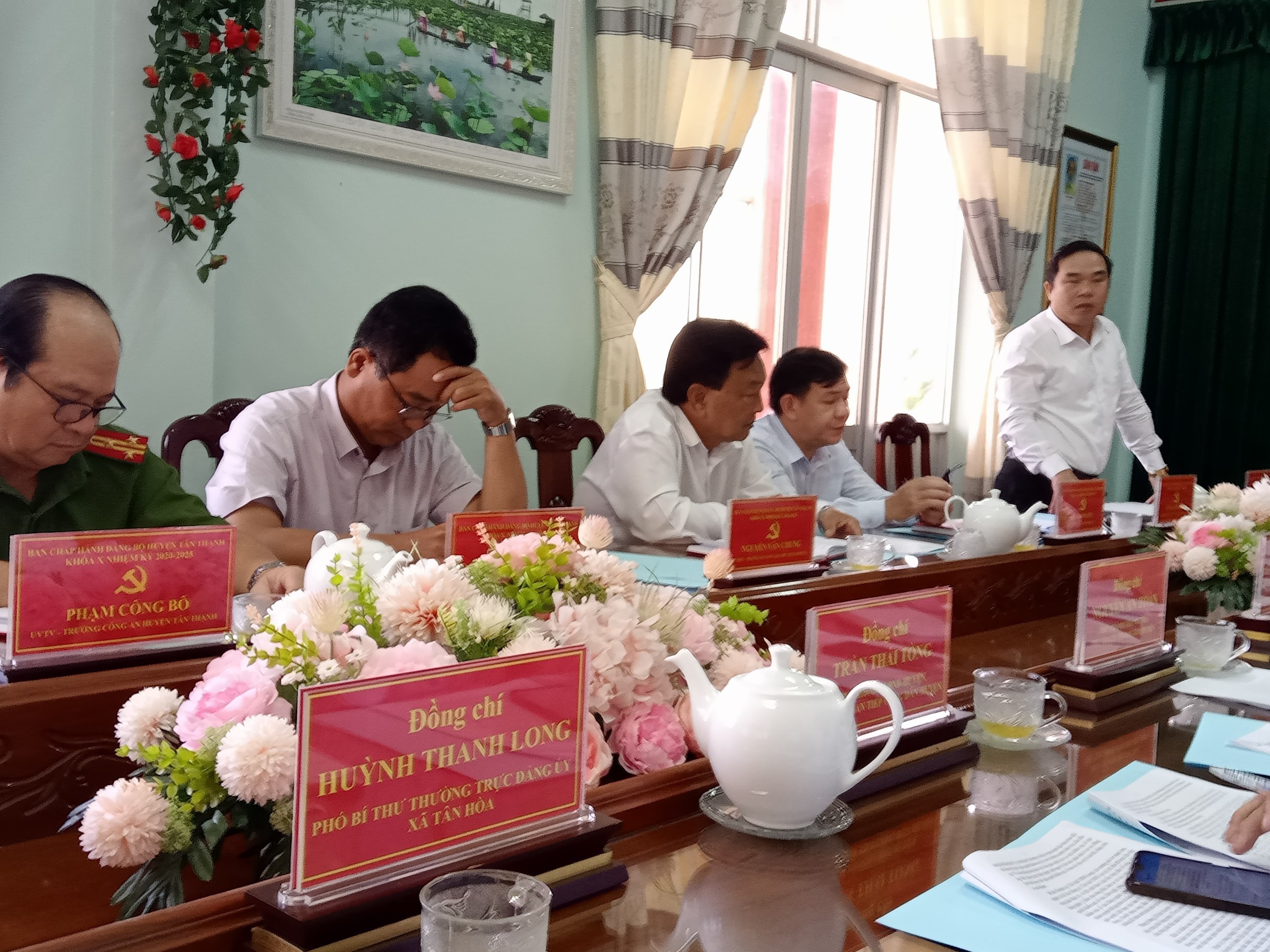 Tiếp và làm việc với Đoàn giám sát có ông Bùi Quốc Bảo – Tỉnh ủy viên, Bí thư huyện ủy cùng với các đồng chí là Ủy viên Ban Thường vụ huyện ủy Tân Thạnh.